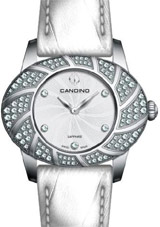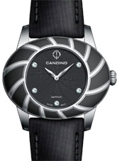 Time for style? This model is a natural addition to last year’s D-Light collection following the request by many for more elegance and glamour. The hypnotising lines radiating from the centre blend beautifully into the oval shape of the case. Different to the models with stones, the enamel effect of the bezel gives a refined look, complimented with the stylish satin strap.