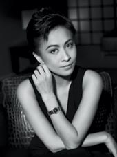 Ladies' model featuring a black dial with 3 Arabic numerals and 8