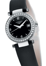 Ladies' model featuring a black dial with 11 diamond hour-markers
