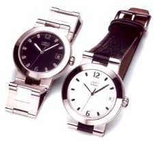 bracelet or a black caltskin strap, has the familiar design elements