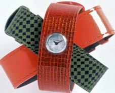 "gril" strap - Illustrated with orange "verni" and green "sixties"