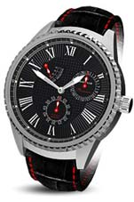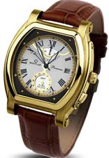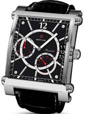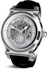 - Central hour and minute hands - Off-centred seconds hand - Retrograde