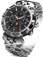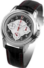 - Central hour and minute hands - Off-centred seconds hand - Chronograph