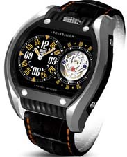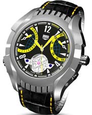- Off-centred hour and minute hands - Fly-wheel tourbillon