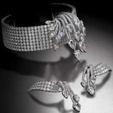carats) et de 6 diamants taille poire (5,22 carats)