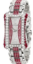 : or gris 18 K, 210 rubis 1ère qualité, 5,0 ct, 136 brillants