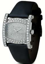 les côtés, cadran orné de diamants et bracelet en satin noir haute