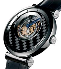 44 mm steel case. The entire dial is made of carbon-fibre and