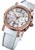 - Case: round in 18K white gold with finely fluted caseband. Sapphire caseback. Diameter 37 mm. Rounded horns welded to the case, screw pins securing the strap. Water-resistant to 30 meters.