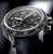 The visual contrasts between the anthracite movement and the pink gold case add to the watch’s crisp contemporary good looks with a revolutionary touch or two, not least the time of day displayed on a lustrous black dial off-centered at 12 o’clock.