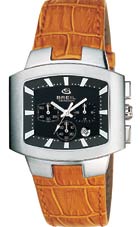 black dial, orange strap