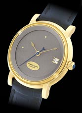 slate coloured flange, winding crown set with a sapphire cabochon,