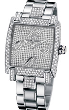 in a square cushion shape embellished with diamonds, and is water-resistant up to 50 meters, making it beautiful,