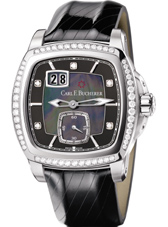 00.10628.08.87.01 acier, cadran nacre noire avec 5 diamants, cuir d’alligator avec boucle déployante en acier |