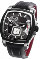 Boîtier: acier, lunette caoutchouc, couronne vissée, verre saphir antireflet sur les deux faces, fond du boîtier avec verre saphir, étanche jusqu’à 50 m, dimensions 44 x 44,5 mm,