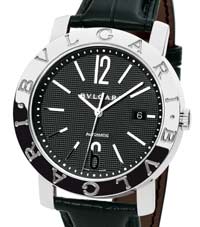 Montre Bulgari-Bulgari : boîtier en acier (42 mm) et bracelet en alligator