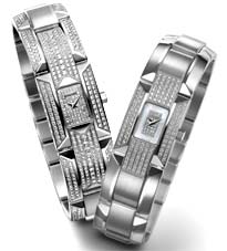 : en acier, serti de 12 diamants (0,35 carat) sur les attaches