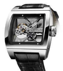 En 2010, CORUM couronne son expertise horlogère en proposant une version tourbillon de cette montre, grâce à la création, au développement et à la fabrication par ses propres équipes du calibre CO 022. Un véritable tour de force puisque c’est d’un tourbillon volant qu’il s’agit : dépourvu de pont supérieur, l’échappement, qui bat à 21’600 alternances par heure, semble flotter librement au-dessus du mouvement baguette. L’ensemble est maintenu par