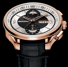 CHRONOGRAPHE grande seconde, compteur de 30 min. à 12 heures, compteur de douze heures à 6 heures
