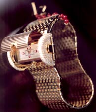 rehaussé d'une pampille de perles de rubis, de bâtons