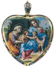 ![]() La Petite Sainte Famille d’après Guido Reni, dit "le Guide" (1575-1642) Montre bassine en forme de cœur Johann Martin, Augsbourg - vers 1675. |