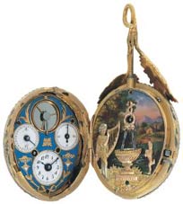 On s'émerveillera d'une paire de montres signées Piguet & Meylan (1758-1823), présentant une peinture du miniaturiste sur émail J.-A. Lissignol inspirée de L'Amour et l'Innocence de Pierre Paul Prud'hon (Inv. S-470 a+b). La palme revient néanmoins à une paire de montres coeurs se faisant pendant qui, due à la même association de talents, contient un remarquable automate à musique (~1820, Inv. S-133 a+b). |